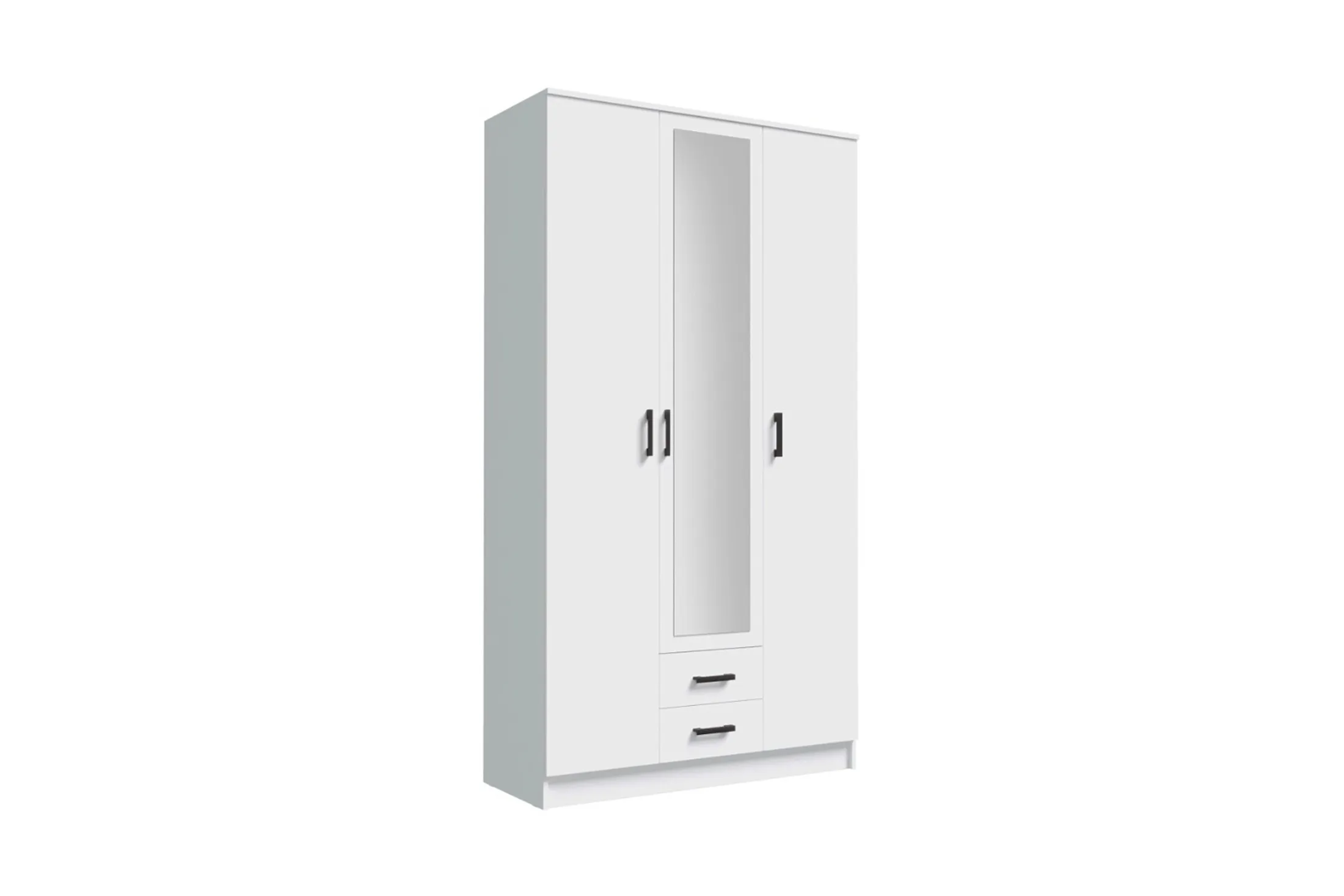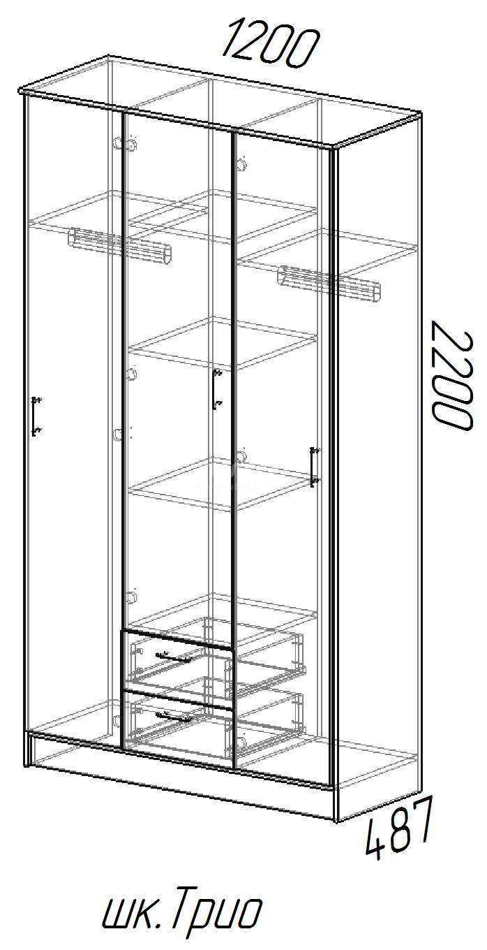 Распашной шкаф с зеркалом ТРИО поможет вам удобно и бережно хранить множество нужных вещей. Модель подойдёт для меблировки любого помещения с современным стилем интерьера.¶Изделие произведено из прочной ЛДСП, благодаря чему будет радовать вас своим качеством на протяжении долгих лет.¶Центральная дверца шкафа оснащена зеркальным полотном, что является очень практичным решением. Использование зеркальных поверхностей в интерьере гарантирует визуальное увеличение пространства и улучшение уровня освещенности.Гарантия 18 месяцев