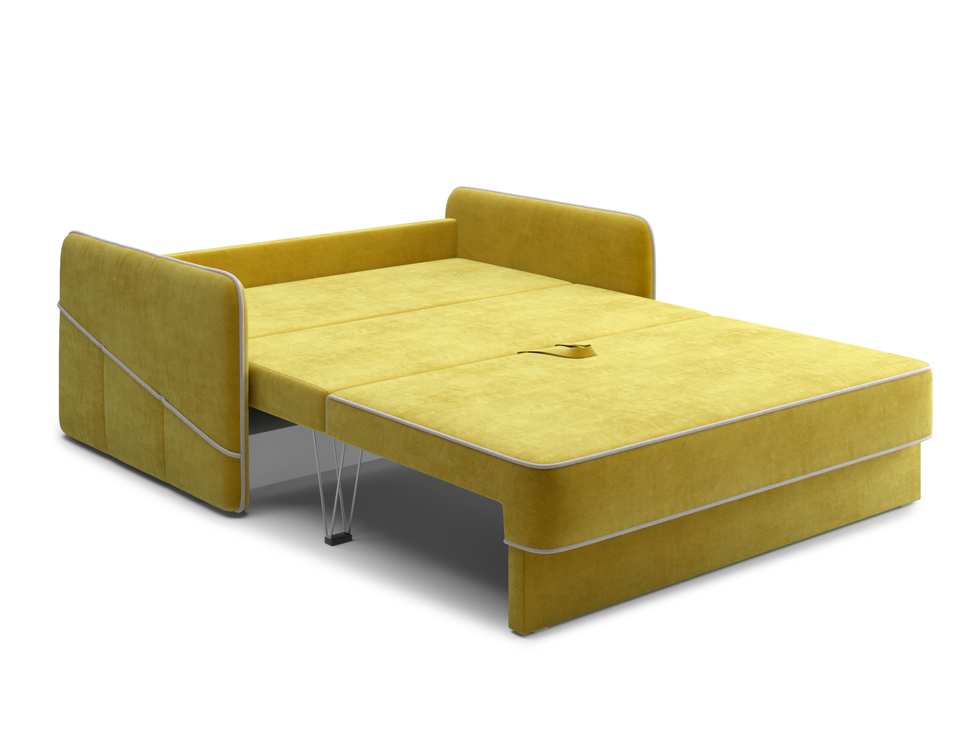 - Механизм раскладки трёхсекционная еврокнижка. В отличие от еврокнижки, спальное место у такого дивана образуется поперёк, а не вдоль сидячего места и состоит из трёх частей. Благодаря такой конструкции габариты дивана в ширину могут быть значительно меньше, чем у еврокнижки, что актуально при планировании расстановки мебели в зависимости от размеров помещения. Под сиденьем дивана находится короб для хранения вещей и постельных принадлежностей.