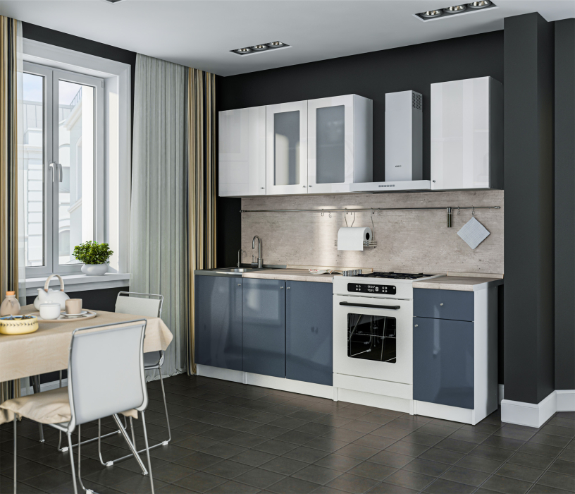 Кухонный гарнитур Катя Белый/МДФ Белый глянец,Графит глянец/МетрополитанR5 (Белый/Серый)