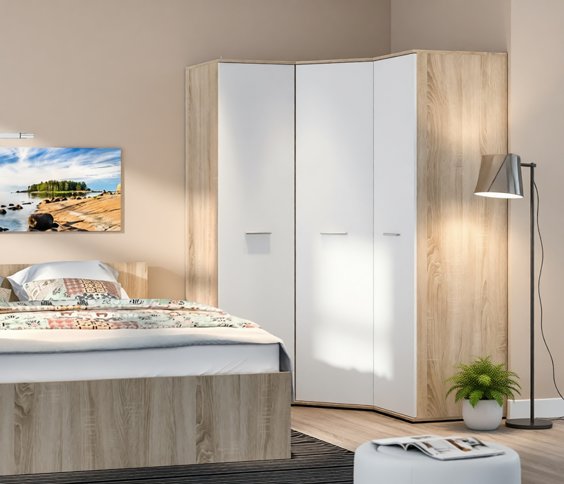 Шкаф угловой Мамбо СБ-2678 (Дуб Сонома/Белый)
