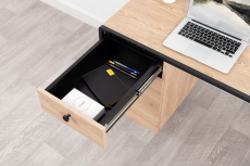Стол дополнен тумбой с распашной дверцей и выдвижным ящиком на шариковых направляющих.