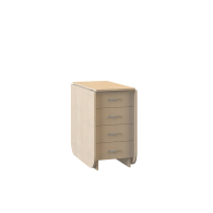 В основании стола расположена тумбочка с четырьмя выдвижными ящиками одинаковой вместимости.