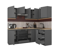 Кухонный гарнитур Леон угловой 210х140 см, диамант серый Код 00000334973