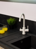 Смеситель для кухни с переключением на питьевую воду, с выделенным каналом GRON PLUS изготовлен из нержавеющей стали.