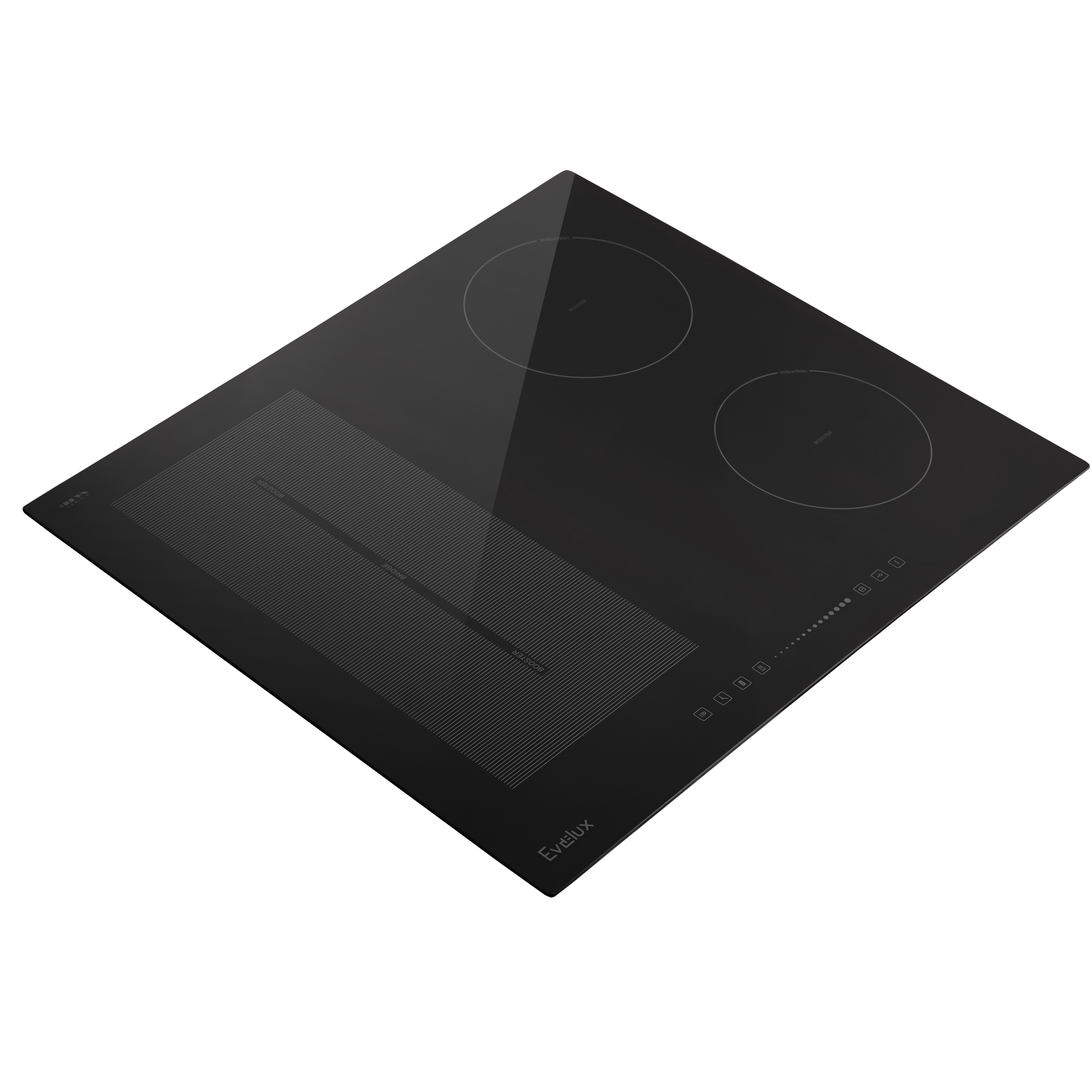 Варочная панель электрическая, индукция, 60 см, 4 конфорки с функцией Booster, сенсорное слайдерное управление, 9 уровней мощности, таймер 1-99 мин, индукционный мост, блокировка управления, защита детей, защитное отключение, функция "пауза", функция поддержания тепла, 7200 Вт, черное стекло, ILVA (Италия), 590 x 520 x 62 мм.