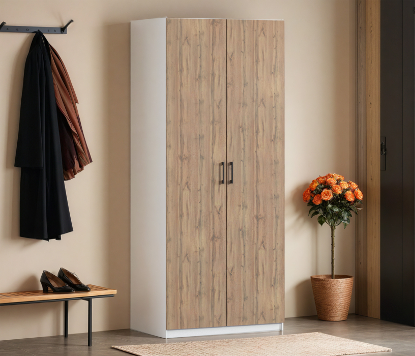 Шкаф двухдверный Макс 1000 мм, вариант №1 (ЛДСП) (Дуб вотан/Белый) Код 00000337248
