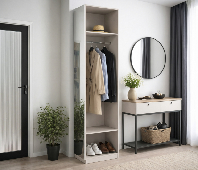 Фурнитура модульной системы включает распашные модули с доводчиками, что обеспечивает мягкое и бесшумное закрывание дверей. Ящики оснащены шариковыми направляющими полного выдвижения, что гарантирует лёгкий доступ к содержимому и максимальную функциональность.