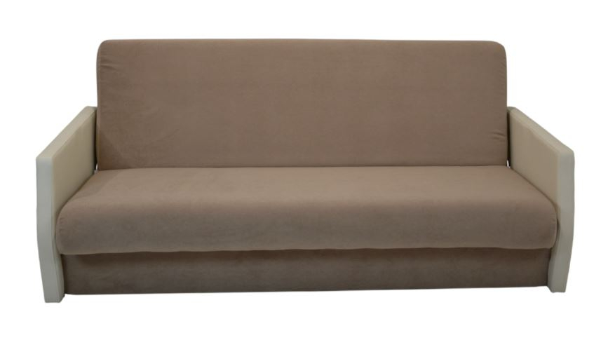Габариты: 1950*600*1100; Спальное место: 1900*1200. Ткань - подлокотники - к/з, сиденье - велюр. Материалы: пиломатериал хвойных пород, фанера, ДВП, ДСП. Синтепон, войлок, пружинный блок. Механизм книжка. Ящик для белья.