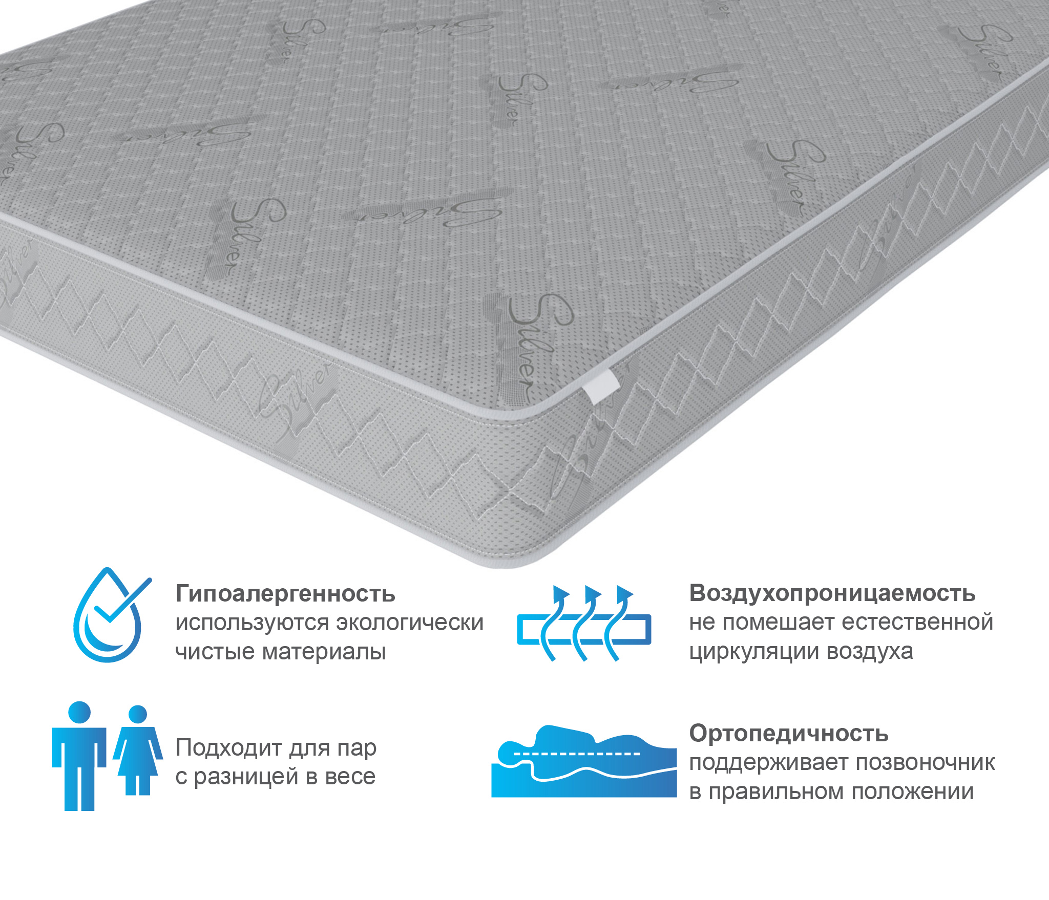 Гипоаллергенный спальный матрас прослужит долгие годы. Для продления срока эксплуатации рекомендуем использовать изделие вместе с защитным чехлом.