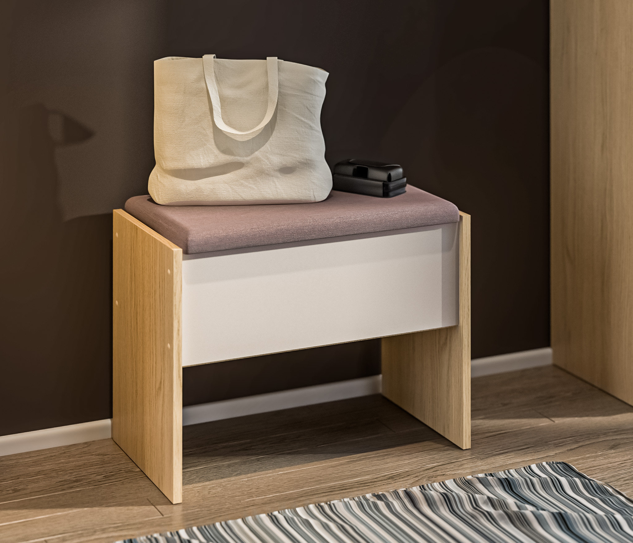 Вместительные шкафчики, удобное отделение для обуви. Выглядит солидно и шикарно. Органично вписывается в небольшую прихожую моей квартиры.