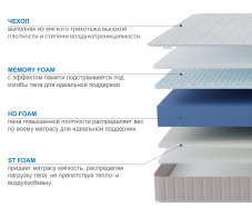 Матрасы на основе пружинных блоков, уверенно сдают свои позиции, им на замену приходят современные беспружинные модели, в основе которых лежат пены, пористая структура которых гораздо более точно способна повторять контуры тела и тем самым уменьшать обратное давление, уменьшая риск пережатия сосудов, что в свою очередь улучшает кровообращение. Данная модель сделана с применением двух разных по своей структуре пен, одна из которых обладает эффектом памяти, который работает от тепла выделяемого телом, т.е. при воздействие тепла пена становится мягче и вы в нее проваливаетесь, при этом части на которые тепла выделяется меньше, сохраняют свои прежние размеры, данное свойство позволяет добиться эффекта "объятия". При этом пена мемори имеет ячеистую структуру, которая позволяет создавать эффект микромассажа, что еще больше увеличивает кровоснабжение. Вторая сторона матраса более жесткая и упругая, что позволит менять степень жесткости спального места по своему усмотрению. При выборе матраса следует помнить о том, что любой матрас не отвечает за правильность положения головы и шеи, их здоровье зависит от правильно подобранной ортопедической подушки. Для увеличения срока службы матраса рекомендуется его использование с защитным чехлом AquaStop. Поставляется скрученным в рулон, что существенно упрощает его транспортировку, ведь в таком виде, матрас войдет почти в любую легковую машину. |