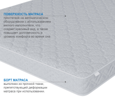 Матрас состоит из комбинации высокопрочных пен и кокосовых матов, что создает уникальное сочетание комфорта и надежности. Данная модель понравится тем, кто предпочитает жесткие матрасы, но при этом одна из сторон более упругая, а другая более жесткая. Ткань чехла матраса не поддерживает горение, что обеспечит дополнительную безопасность. Это отличная классическая модель беспружинного матраса, отвечающая всем современным требованиям. Материалы матраса обладают превосходной воздухопроницаемостью, что обеспечивает высокую степень термального комфорта как в зимние, так и в летнее время.При выборе матраса следует помнить о том, что любой матрас не отвечает за правильность положения головы и шеи, их здоровье зависит от правильно подобранной ортопедической подушки. Для увеличения срока службы матраса рекомендуется его использование с защитным чехлом AquaStop.