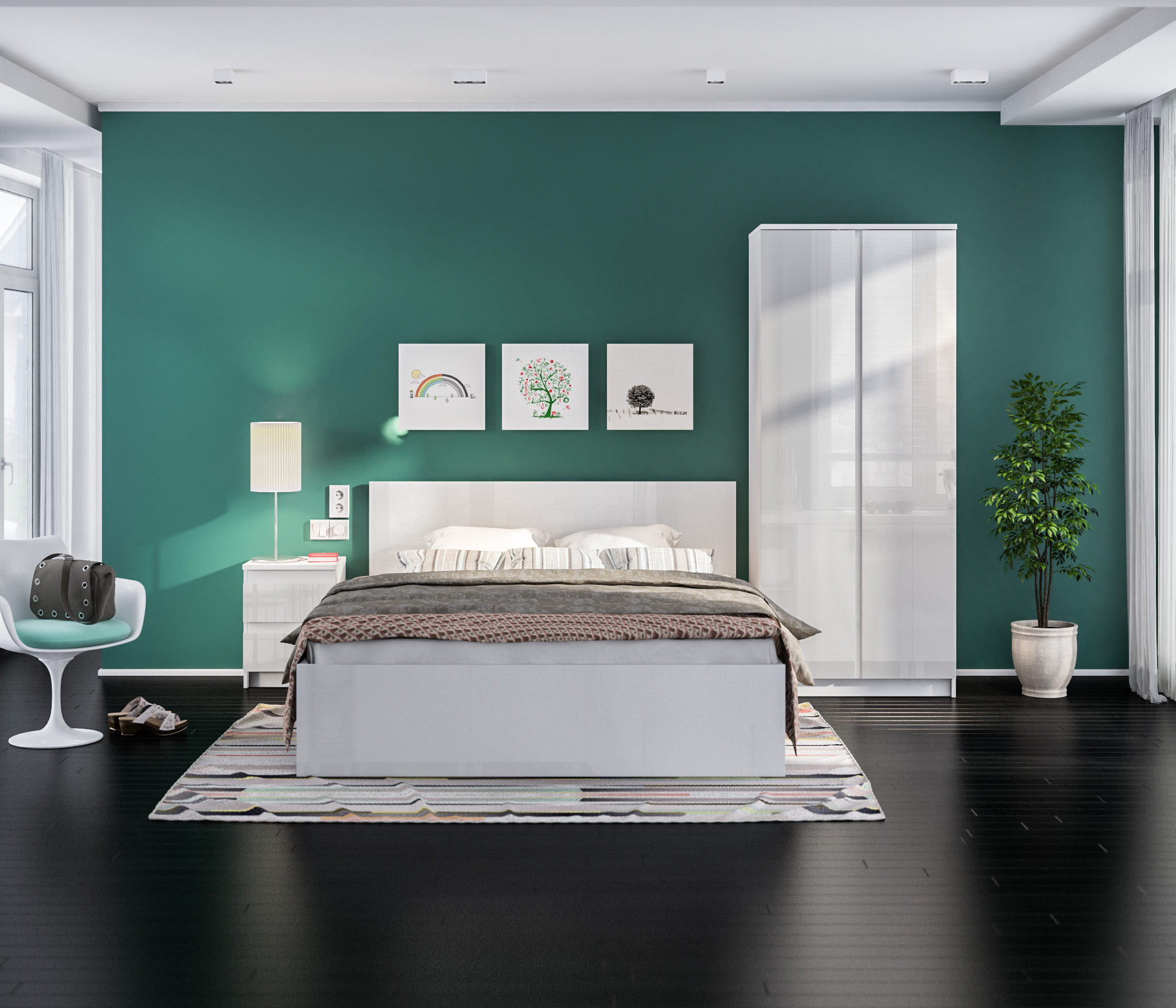 Очень большая кровать, спать удобно, деткам нравиться, белая смотрится красиво и светло в комнате .