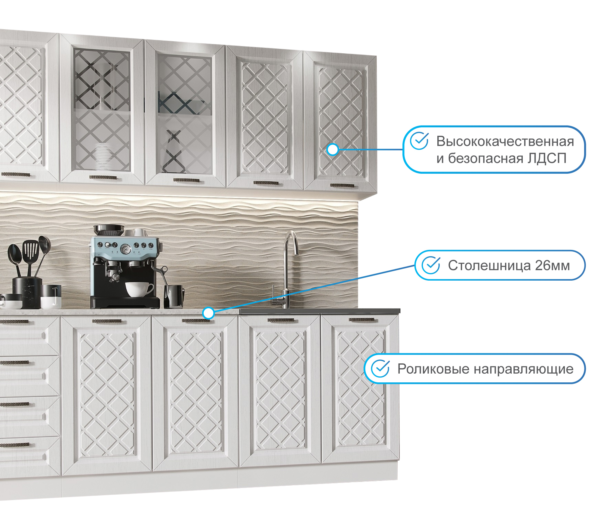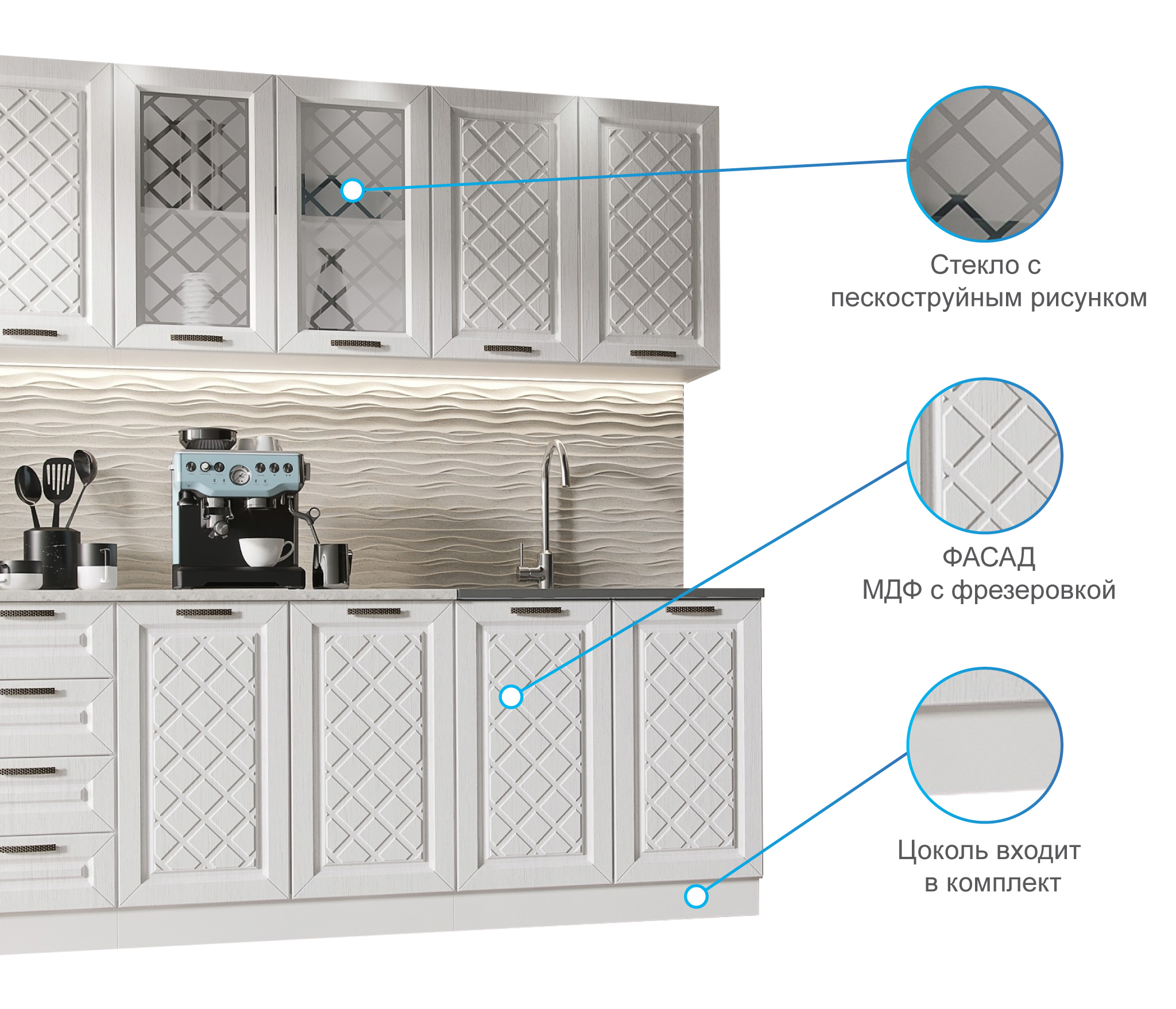 Кухня Агава 2,0 м Акация Белая МДФ Код R0000280963