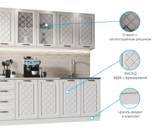 Кухня Агава- изящный гарнитур с фрезеровкой по фасаду и матовыми стёклами.