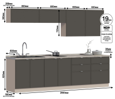 Кухонный гарнитур Регина Квадро Песочный / Базальт 2,8 м (Базальт)