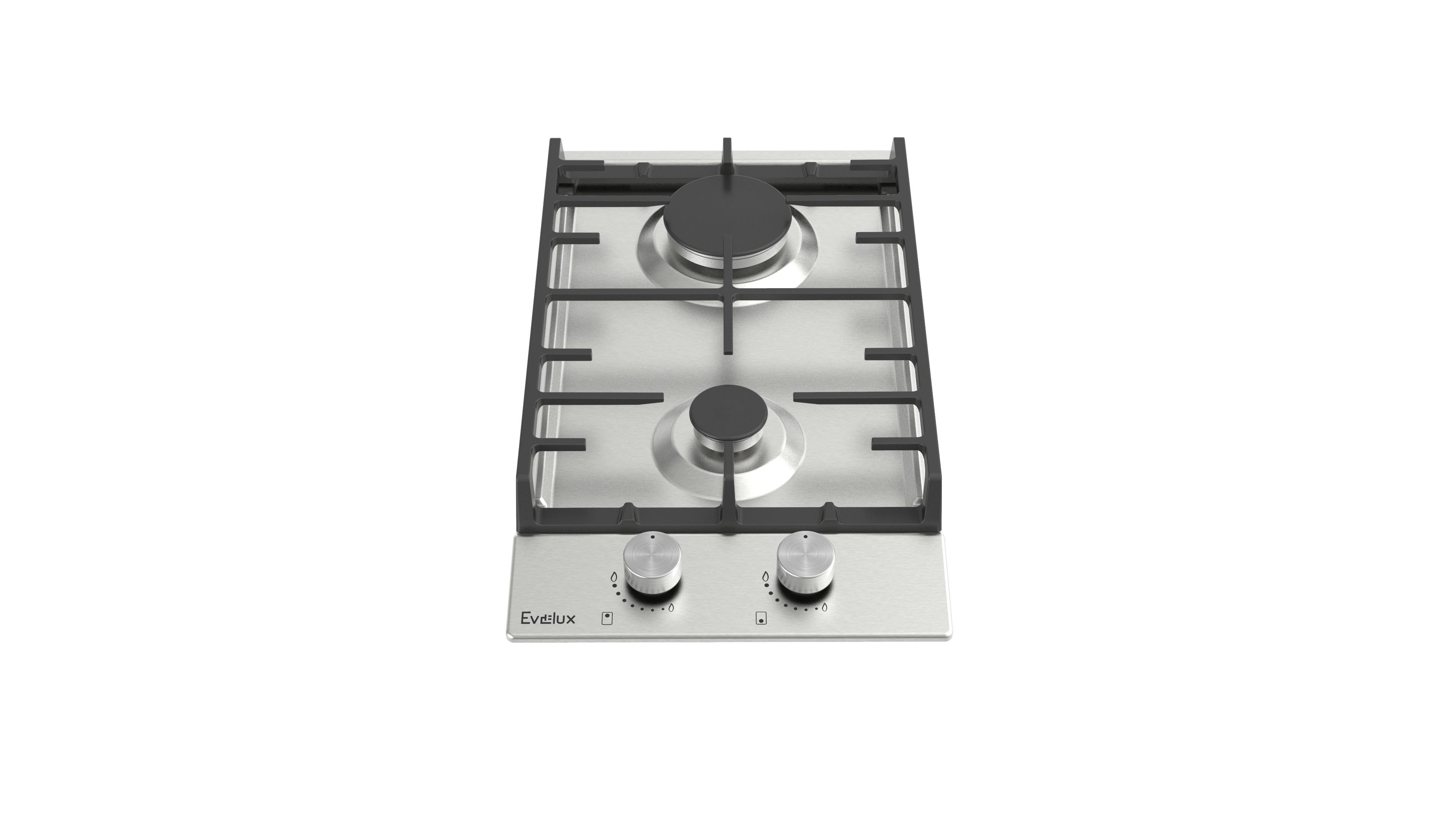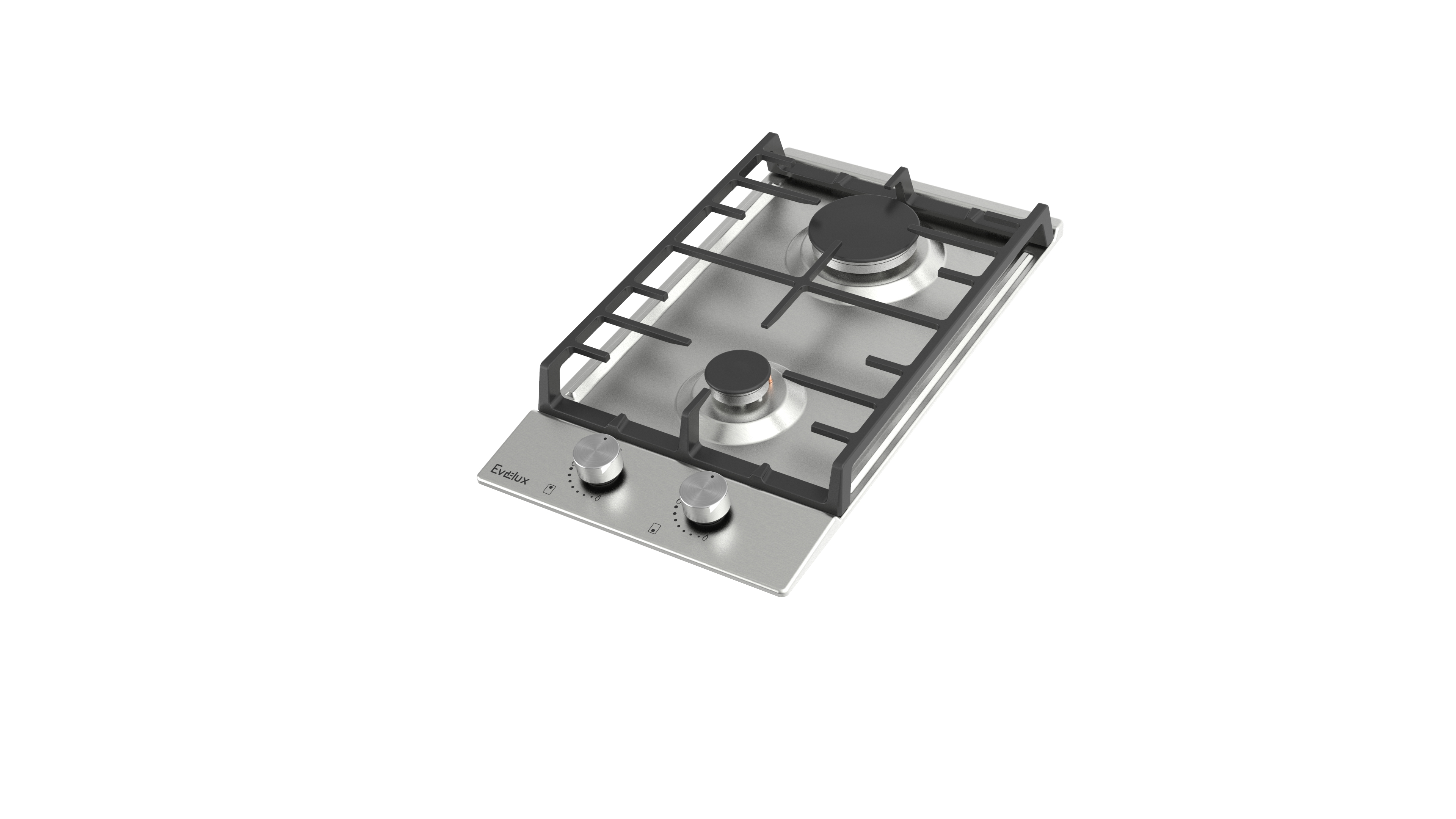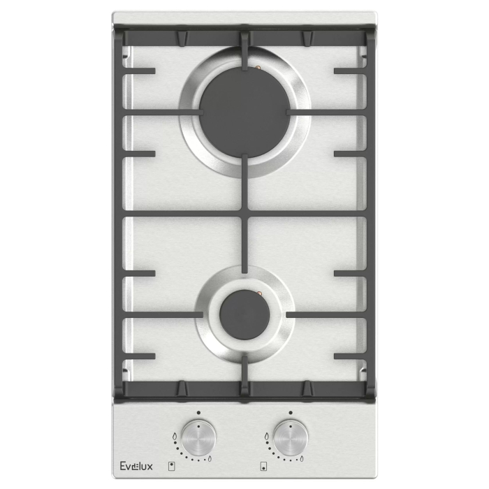 Поворотные регуляторы газовых варочных поверхностей Evelux выполнены из металла, что создает профессиональный стиль и препятствует их перегреву.