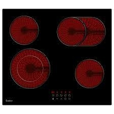 Варочная панель электрическая, стеклокерамика, Hi Light, 60 см, 4 конфорки, сенсорное управление, 9 уровней мощности, таймер 1-99 мин, блокировка управления, защитное отключение, двухконтурная, овальная зона, 6600 Вт, черное стекло, 590х520х50 мм.