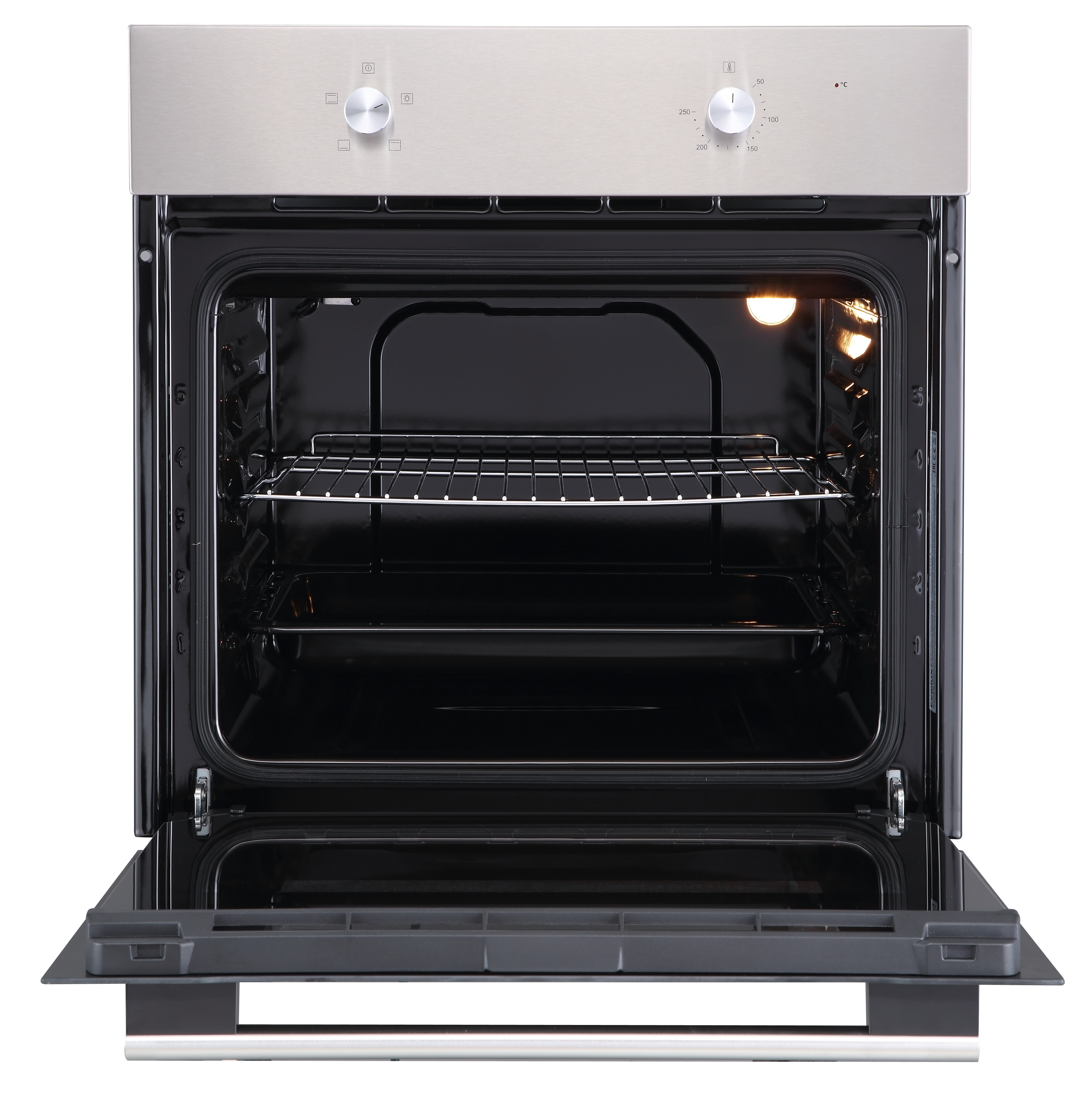 Электрический духовой шкаф встраиваемый полноразмерный, 60 см, механическое управление, 4 режима, объем духовки 65л, поворотные переключатели, панель управления - нержавеющая сталь, универсальный противень, решетка-гриль, двойное стекло дверцы, легко-съемное большое внутреннее стекло Full Glass, защитное отключение, охлаждающий вентилятор, 595х575х595 мм.
