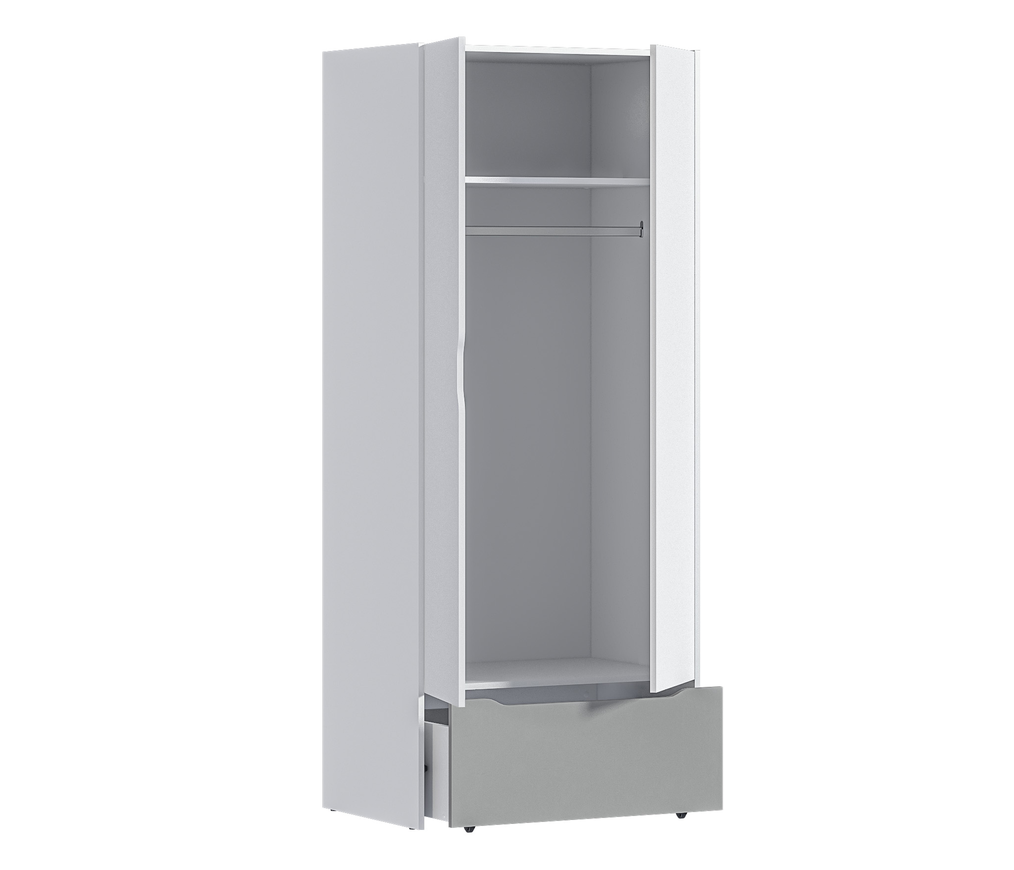 Двухдверный шкаф Mika СБ-3272 стильный элемент модульной коллекции Mika, которая была разработана специально для детских и подростковых комнат. Это универсальное место хранения, которое можно использовать как соло, так и в составе гарнитура. Габаритные размеры – ширина 83 см, высота 200,4 см и глубина 55,7 см. Шкаф имеет плательное отделение со штангой для плечиков и в нижней части есть вместительный выдвижной ящик. Корпус шкафа выполнен из прочного ламинированного ДСП, отделка в цвете «Белый альпийский». Материал фасадных поверхностей – ЛДСП в цветах отделки «Белый альпийский» и «Серый перламутровый». Вся мебель коллекции выполнена в лаконичном дизайне, без лишнего декора и безопасна в использовании.