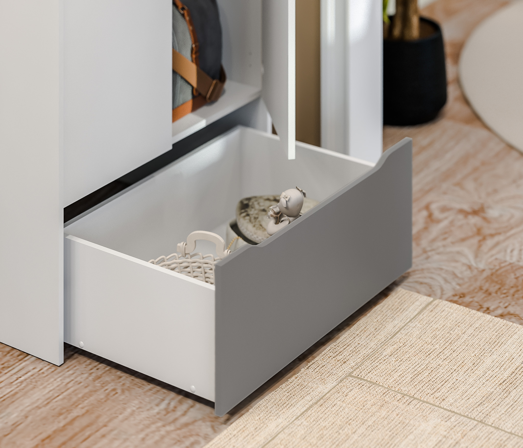 Для детской пригодился. Легко протирается поверхность. Во внутрь приклеили зеркало и стало очень удобно доставать вещи. Порядок теперь обеспечен