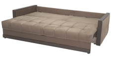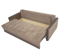 Радиусные углы «сглаживают» изделие. Спальное место легко трансформируется в большую удобную кровать – механизм трансформации «Тик-Так» удобный и лёгкий в эксплуатации. Сиденье создано по технологии «Split Foam». Наполнитель изготовлен из рассечённой анатомической пены, соединённой в несколько слоёв. Сиденье средней жёсткости. Ортопедическое основание «Birch battens» - средней гибкости, на основе берёзовых лат. Идеально подходит для анатомических моделей.