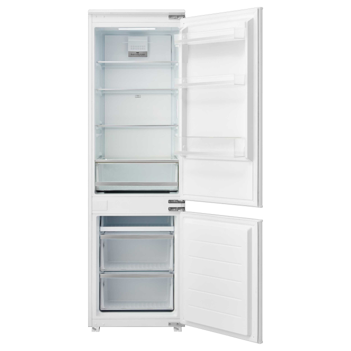 Встраиваемый холодильник-морозильник с функцией No Frost холодильного и морозильного отделений, Класс энергопотребления: A+, электронное управление с LED индикацией, Динамическое охлаждение Dynamic Air Cooling х/о, стеклянные полки в х/о, большой ящик для овощей и фруктов CrispBox c регулировкой влажности, Выдвижная полка Sliding Tray в м/о, Cкрытая ниша для хранения бутылок, закрывающаяся дверная полка в х/о, LED освещение х/о, количество компрессоров: 1, автоматическое размораживание х/о и м/о, Перенавешиваемые двери, слайдерное крепление, Объем нетто холодильного отделения, л: 182, Объем нетто морозильного отделения, л: 59, Габаритные размеры (в/ш/г), мм: 1770/540/545.