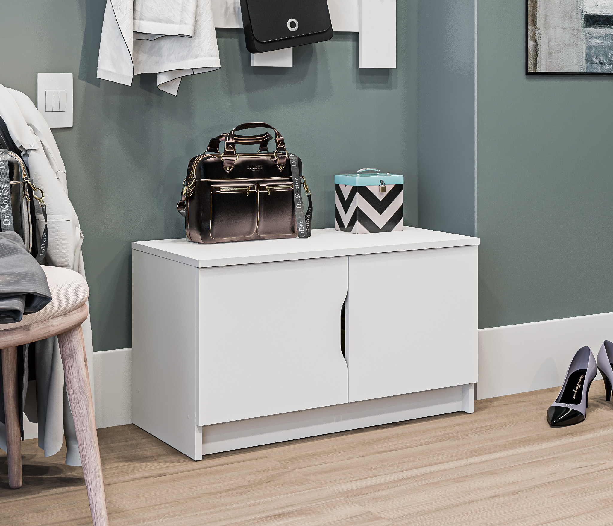 Белый цвет шкафа добавляет светлую и свежую атмосферу в комнату. Он легко сочетается с другими элементами интерьера и создает ощущение простора.
