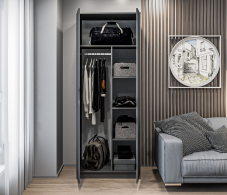 Также внутри шкафа есть штанга для одежды, где вы можете повесить свои вешалки с платьями, рубашками и другими вещами, которые нужно повесить.