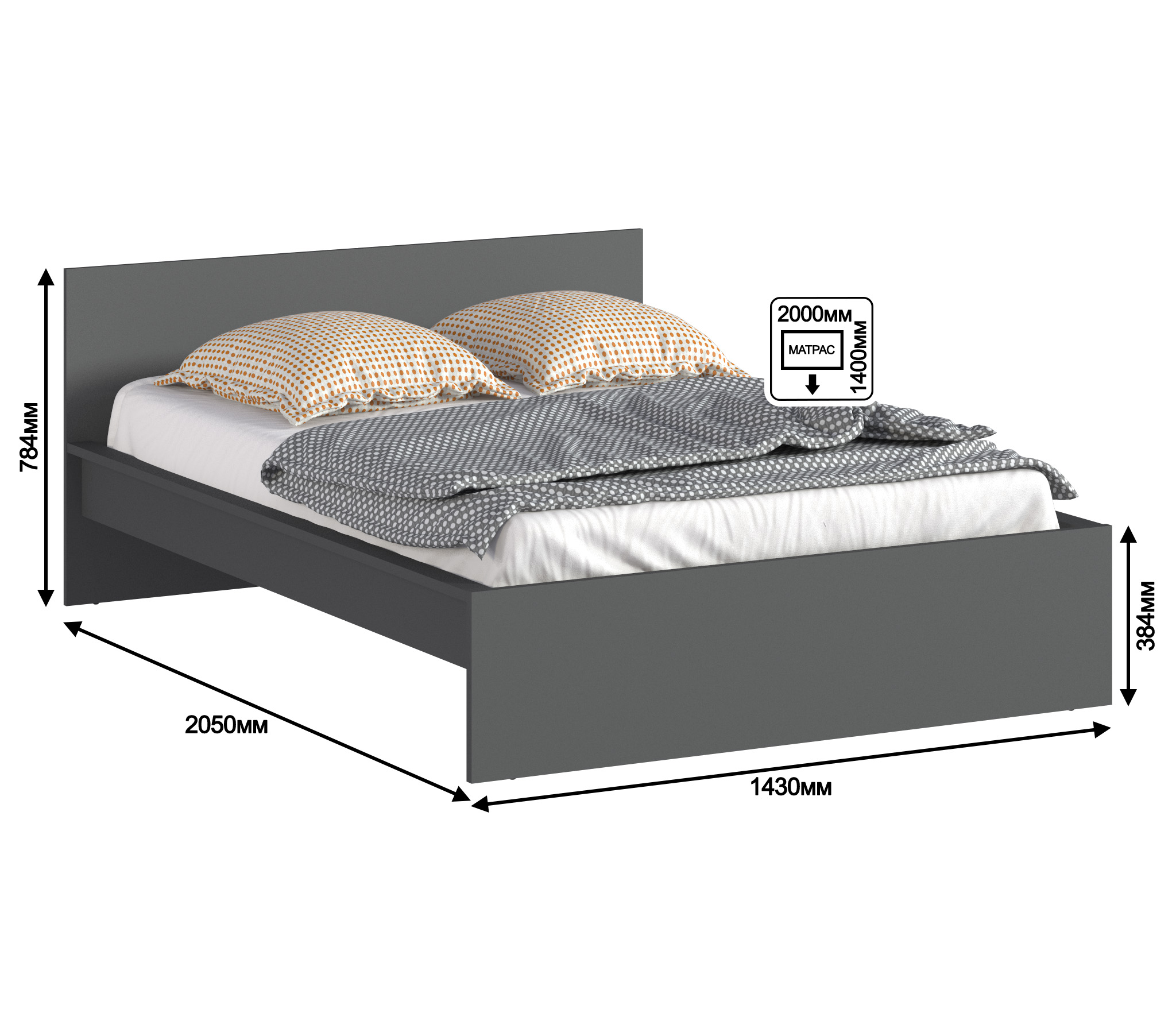 Дополнительно рекомендуем приобрести матрас размером 1400х2000 мм.