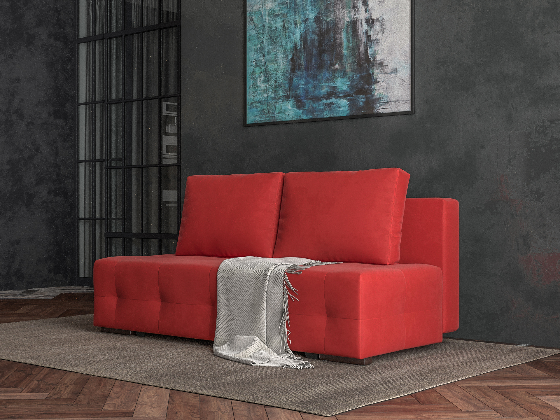 Прямой диван Марс №1, микровелюр (Красный)