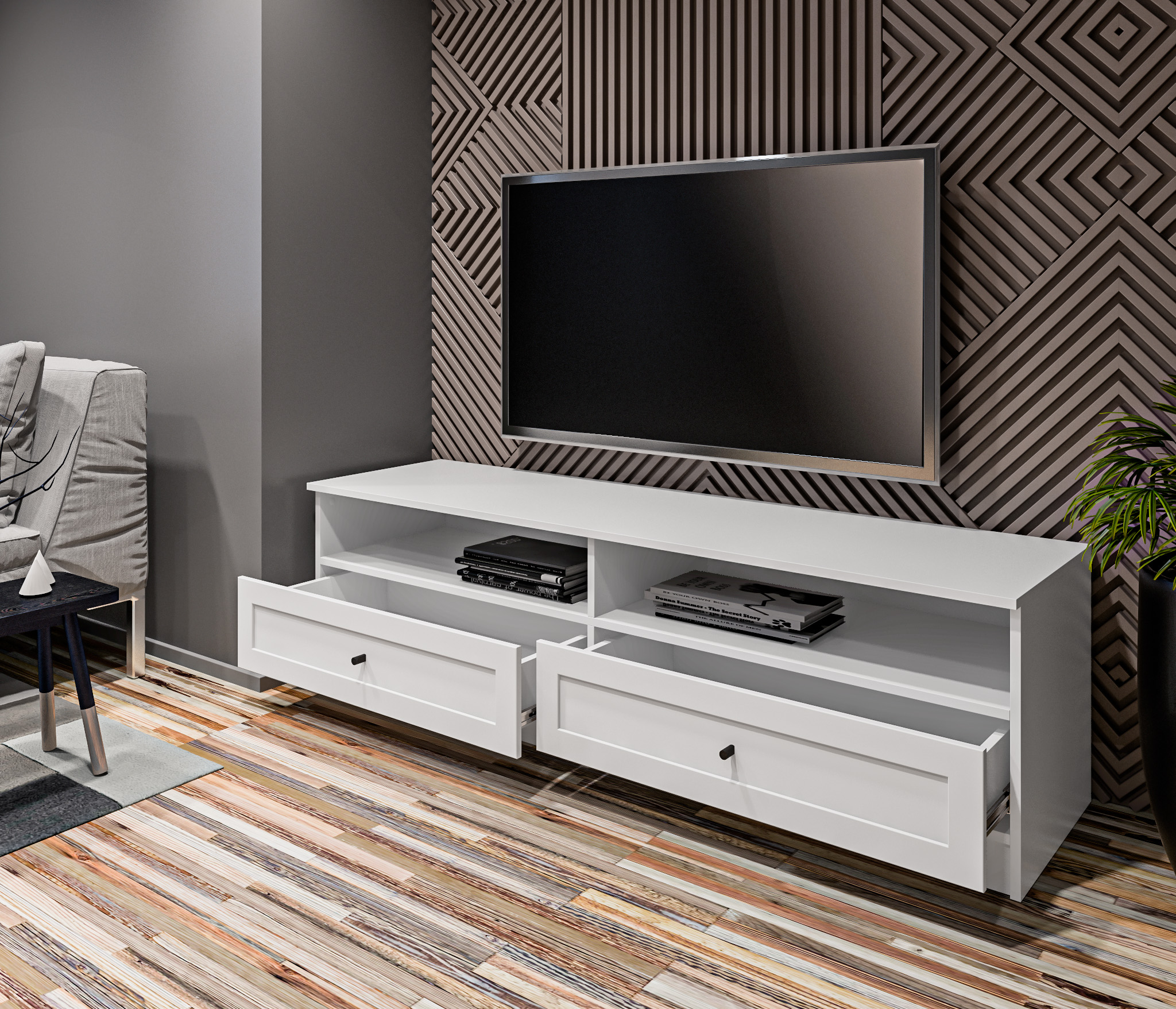 Продуманные детали делают использование тумбы максимально удобным: шариковые направляющие обеспечивают плавное выдвижение ящика.