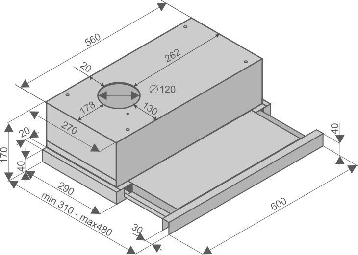 • Корпус вытяжки изготовлен из высокопрочной итальянской стали.
